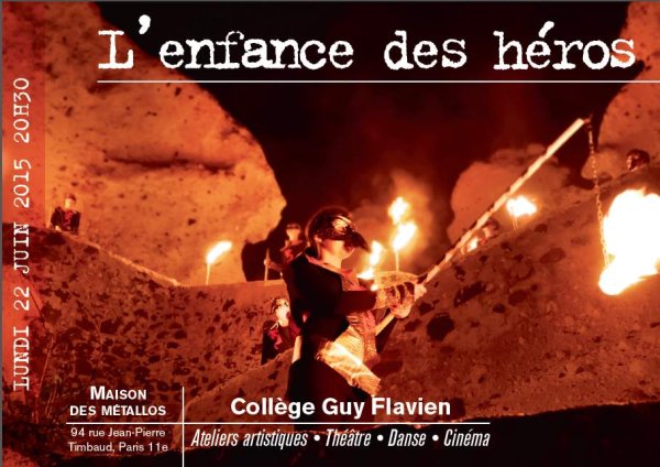 Le collège Guy Flavien, Paris 12, dans le cadre de ses ateliers artistiques vous propose la représentation : "L’enfance des héros"